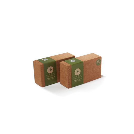 Yos Yoga Combo Starter Kit - Set of 2 Natural Cork Block with Yoga Travel Cork Mat (2mm)