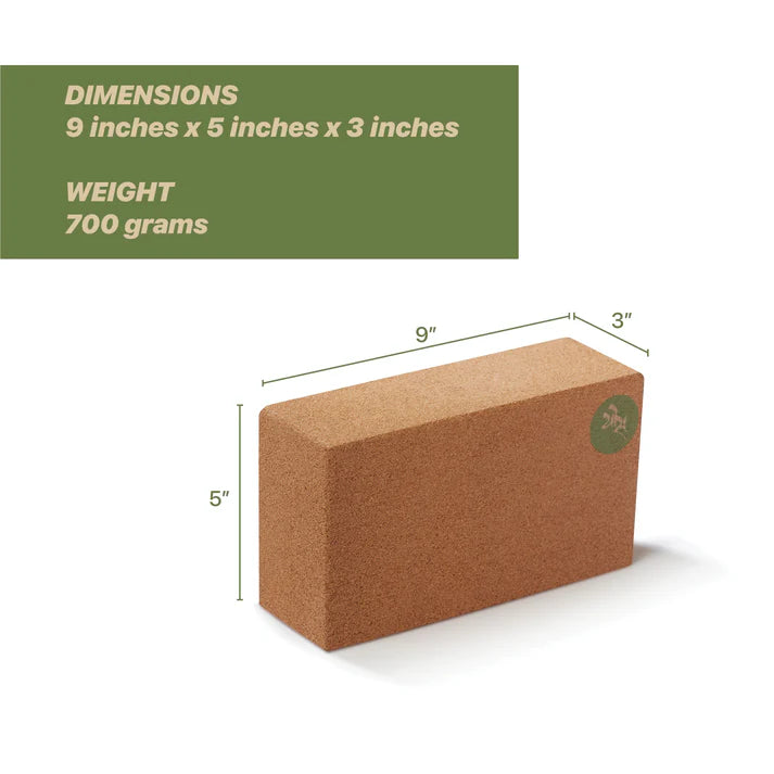 Yoga Combo Starter Kit - Set of 2 Natural Cork Block with 1 Cotton Strap/Belt 9ft